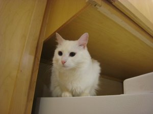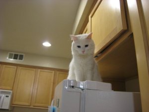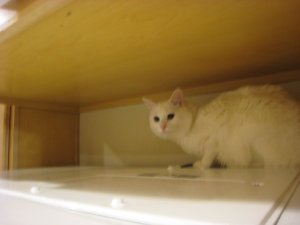 小白白勒 因為年紀最小 都跟兩個學 還好 早上叫我起床 是跟阿貓學外星人叫聲 不過小白白很ㄋㄞ 看到下面照片你就知道爲什麼了