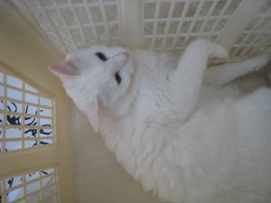 注意下下張 小白白的眼睛 同樣時間照的 眼睛還是烏溜溜的)