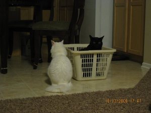 (小黑黑為了要確保小白白有講話 跟在旁邊威脅小白白 還裝著一副跟我無關的樣子)