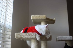 Felines Christmas Cats December 19, 2009 snowangellatte Leave a comment 50% off 我才捨的買下去 要不然 我家都是快樂光溜溜族啊ㄟ 啊可是只有這件剩下來勒 只有小白白穿的下去另外兩隻 阿貓要當披風 一隻要當 ㄟ 抹布 喔郝絲嘉束腹 那隻喔根本連脖子都不能扣標籤當然還不能撕掉 剛開始這小姐給我到退嚕 現在才好一點 不過也是要找地方躲阿貓還沒受到虐待 所以才會去玩小白白的以八 阿貓 我待會幫你帶一個美美的喔阿貓看看 別緊張啦Latte喔 非常討厭身上有東西 還有一頂帽子 非得給你帶上才可以 Share this: Share on Facebook (Opens in new window) Facebook Share on X (Opens in new window) X Like Loading... Related