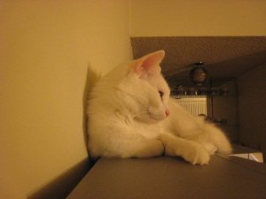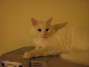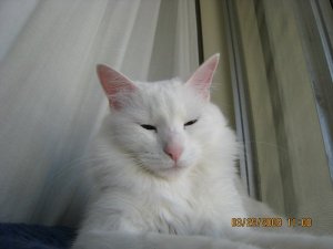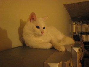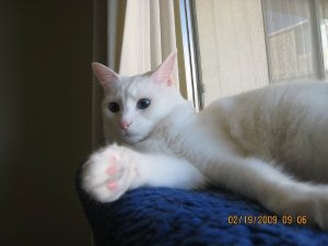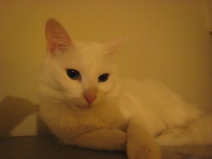 有一隻 白貓 odd eyes. 一直跟我玩