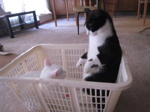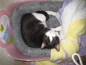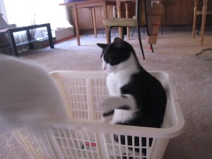 The truth is: Angel really wanted him out of that basket. (that basket is Nana’s favoriet.)