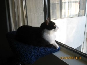 the truth is: after Angel jumped out, he started licking up the leftover of dental treat in the basket. ha, Nana did not finish all her dental treat this morning. 原來 人爲財死 貓爲食亡啊!